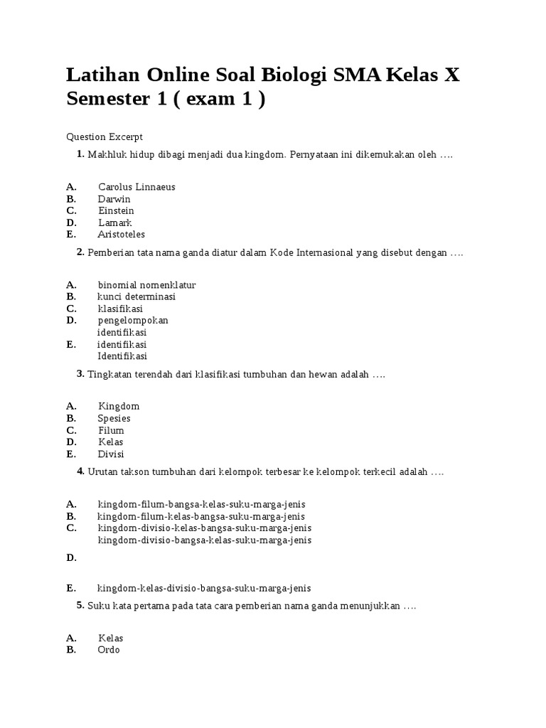Latihan Online Soal Biologi Sma Kelas X Semester 1