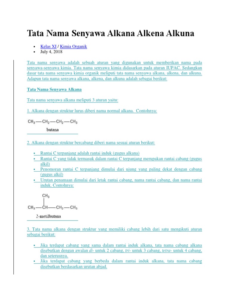 Tata Nama Senyawa Alkana Alkena Alkuna