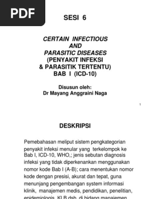 BAB ALFABET ICD I A00 B99 Penyakit Parastik Dan infeksi Tertentu II C00 C99 D00 D48 Neoplasma ganas Neoplasma in situ dan jinak III D50-D89 Penyakit Darah Dan Organ Pembentuk Darah IV E00-E90. Peraturan reseleksi diatur di dalam ICD-Volume 2 dalam 5 rules MB1 MB2 MB3 MB4 MB5 disertai catatan khusus untuk Bab-Bab tertentu 444 Halaman 112-123 43 RULE MB1 Kondisi minor direkam sebagai Kondisi. Linnaeus Pada waktu yang hampir bersamaan hidup pula seorang ahli metode Linnaeus 1707-1778 satu di antara karya besarnya adalah Genera Morborum.