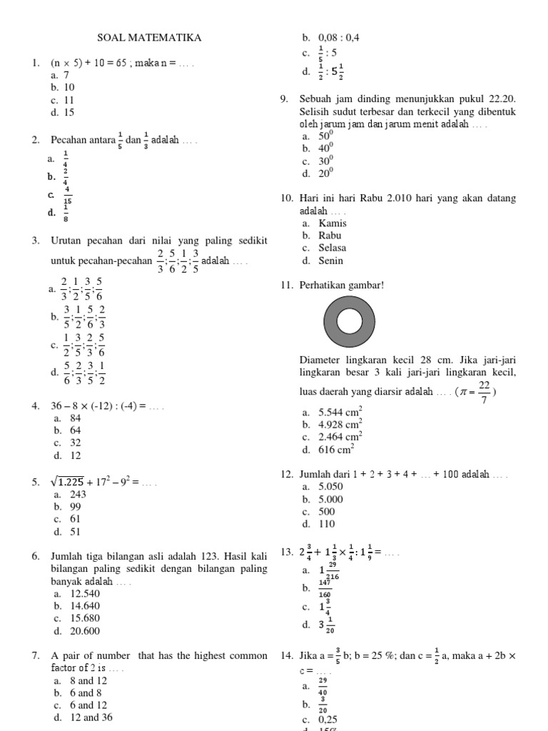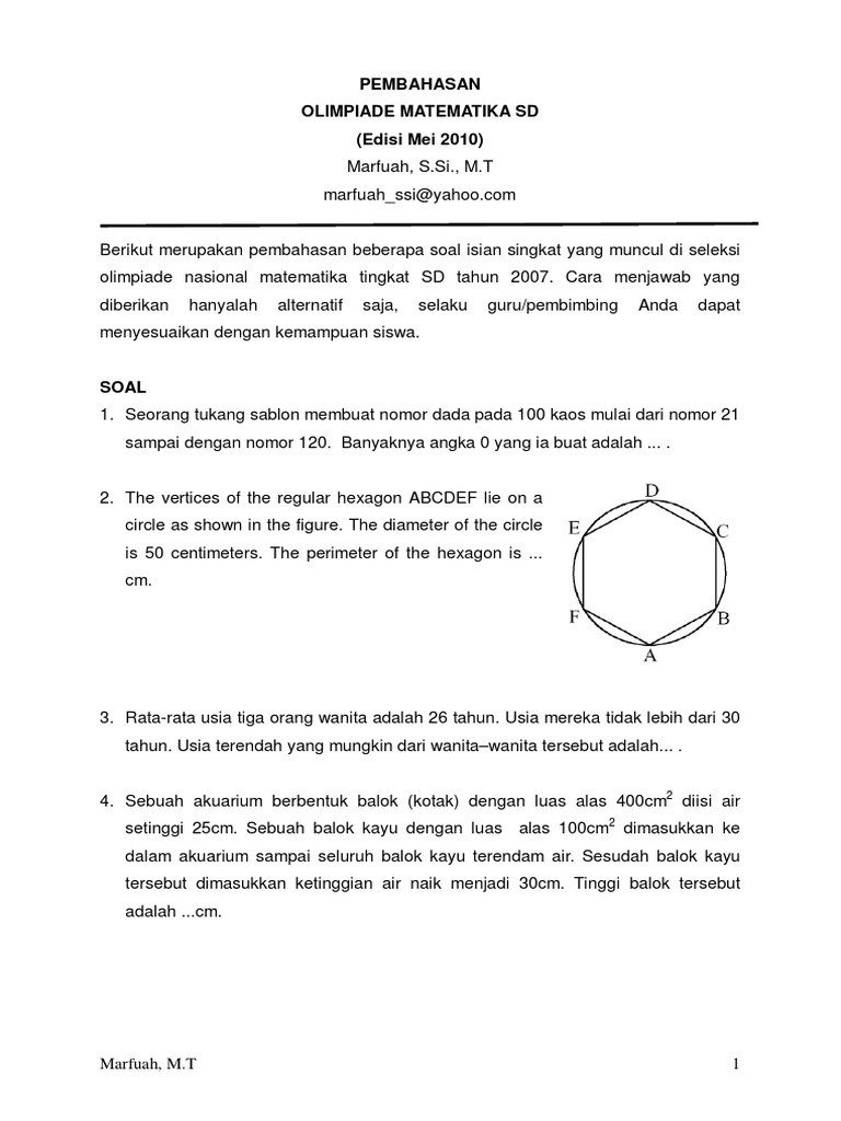 Soal Olimpiade Matematika Sd Tahun 2010 Soalujian Net
