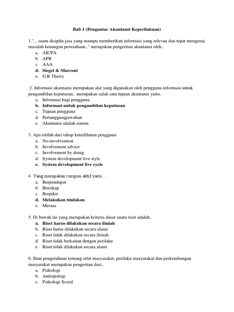 Berikut ini adalah file tentang soal dan jawaban uts akuntansi keperilakuan yang bisa bapakibu unduh secara gratis dengan menekan tombol download pada tautan link di bawah ini. Soal dan jawaban akuntansi keperilakuan bab 12Hal yang diperlukan dalam sebuah surat lamaran pekerjaan adalah hal hal yang harus dihindari dalam penulisan surat lamaran pekerjaan sebagai berikut berikut fungsi perihal dalam surat lamaran pekerjaan kecuali bagian isi surat balasan lamaran pekerjaan yang berisi penolakan secara jelas dan benar. Dan pada bab akuntasi perusahaan jasa mungkin kamu harus belajar lebih dikarenakan hal ini biasanya akan muncul sebagai kisi-kisi untuk menempuh tes atau ulangan semester.