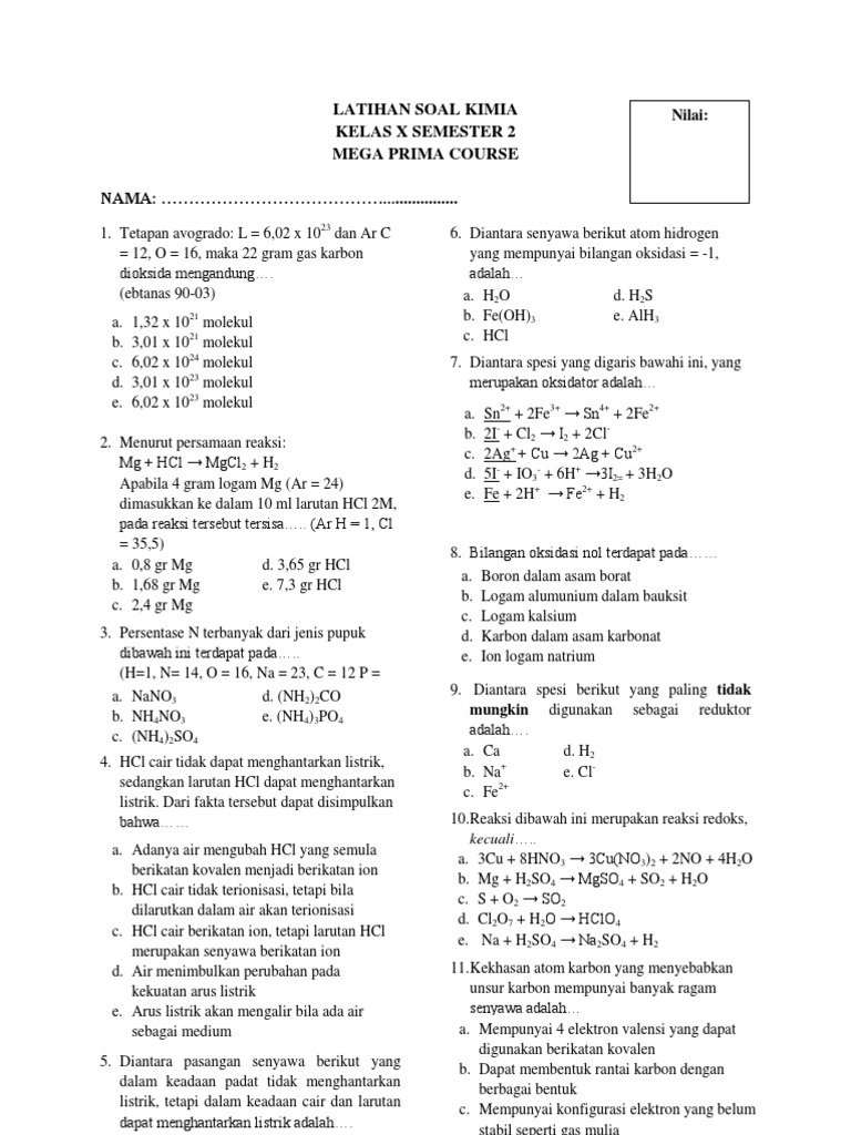 Doc Soal Uts Kimia Kelas 10 Semester 2 Kunci Jawaban Yeni Rahmawati Academia Edu