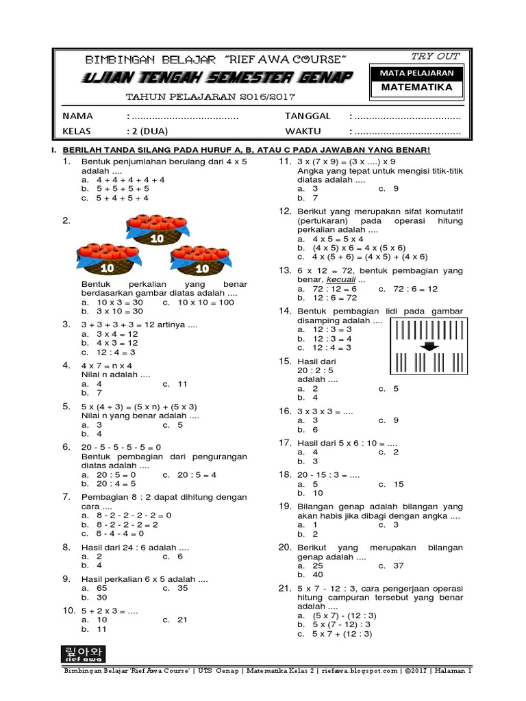 2 Soal Uts Matematika Kelas 2 Sd Semester 2