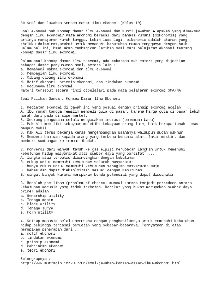 Doc Soal Dan Jawaban Konsep Dasar Ilmu Ekonomi Kelas 10 Muhammad Katamso Academia Edu