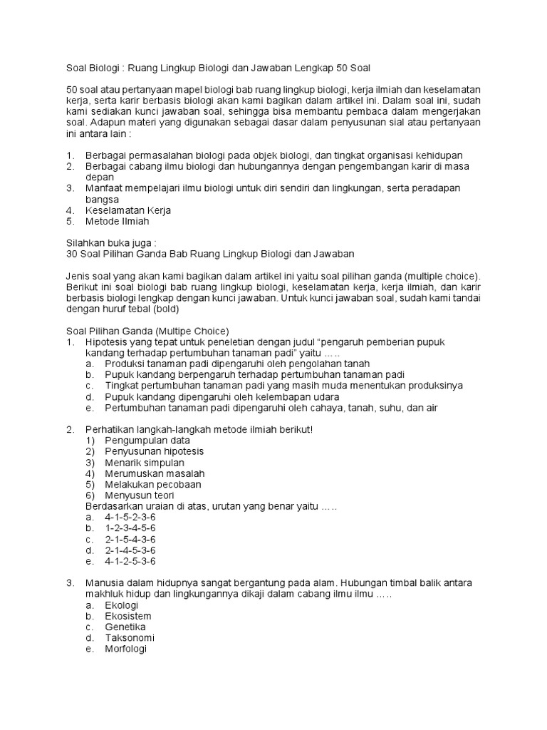 Soal pembahasan metode ilmiah dan ruang lingkup biologi Posted by By Suryana Hisham 28 Desember 2015. By asep Posted on 01082020 01082020 Category. Ruang lingkup dan permasalahan biologi Halo para pecinta biologi dimanapun kamu berada.