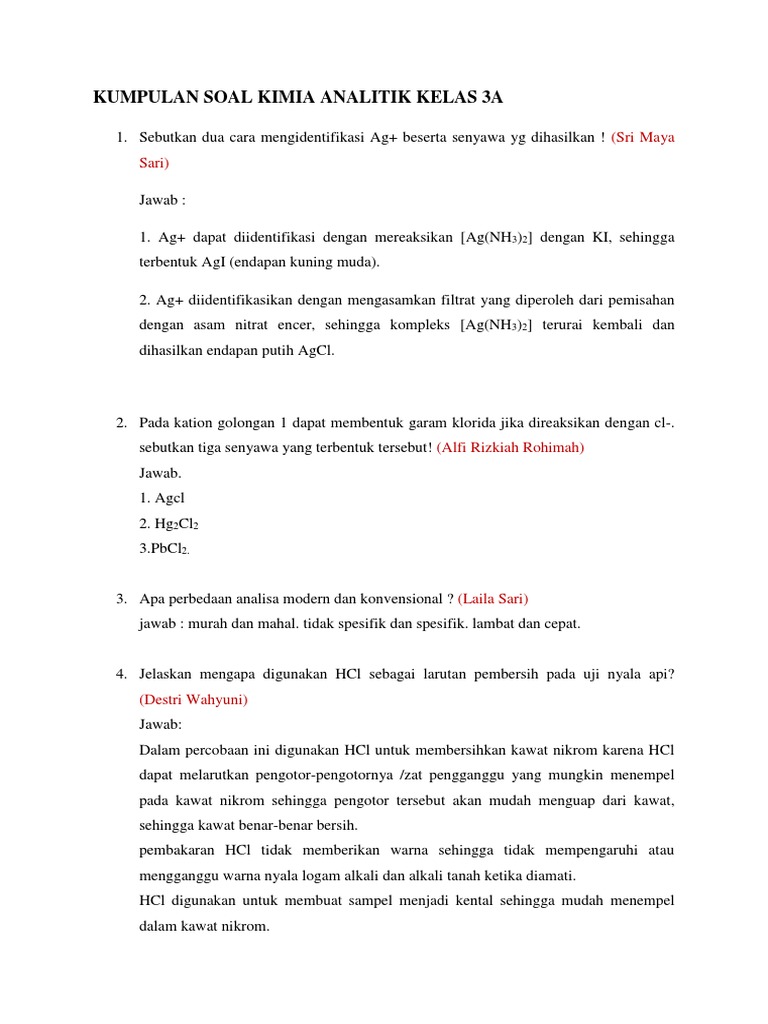Kumpulan Soal Kimia Analitik Kelas 3a
