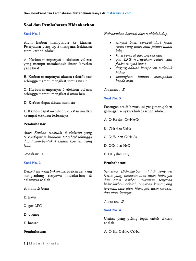 Soal kimia hidrokarbon.doc. Download Soal dan Pembahasan Kimia UTBK 2019 PDF DOC. Diketahui beberapa sifat kimia sebagai berikut. HTTP ERROR 503 Problem accessing apiprocessFulltextDocument.