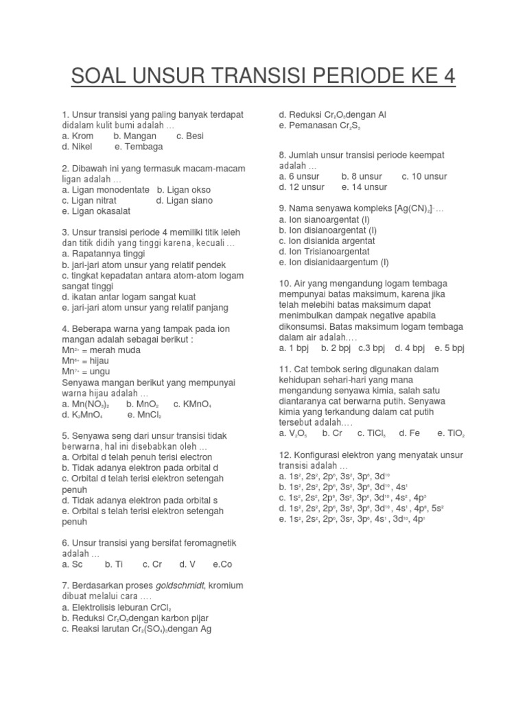 Soal Unsur Transisi Periode Ke 4