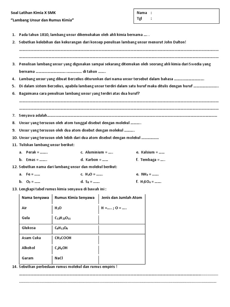 Soal Latihan Kimia X Smk Lambang Unsur Dan Rumus Kimia