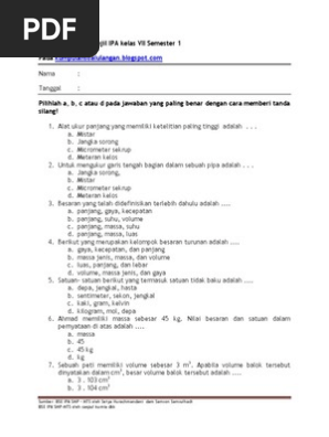 Kumpulan Soal Ipa Smp Kelas 7 Semester 1 Didno76 Com
